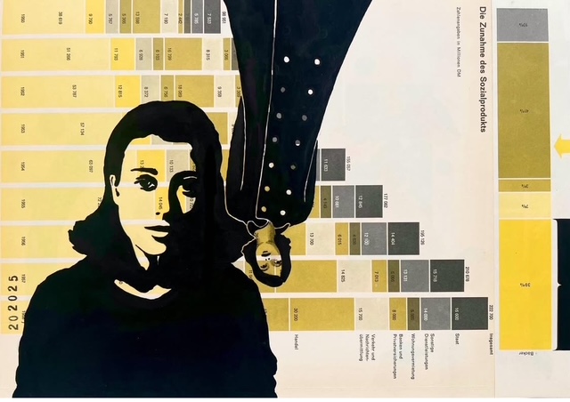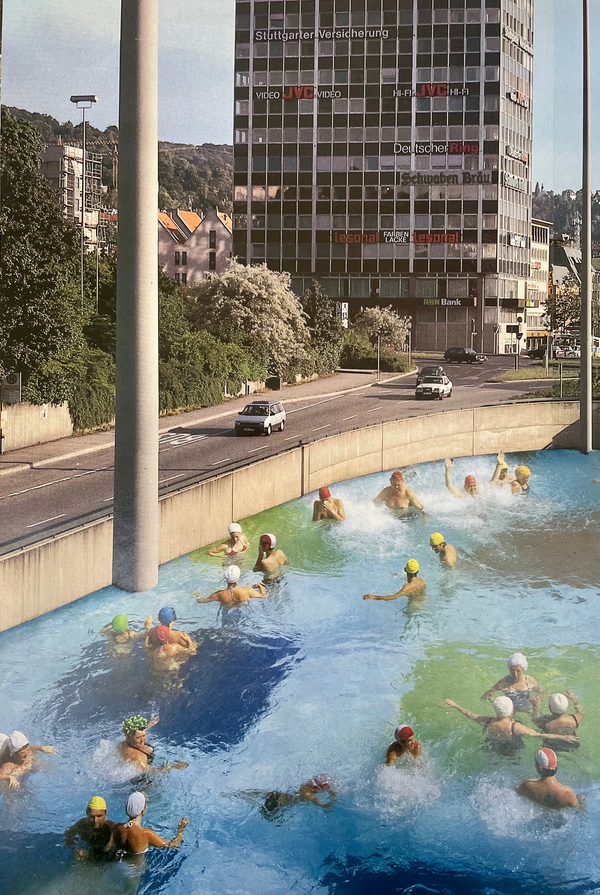 Was bedeuten Wahrzeichen für eine Stadt? Im Falle von Stuttgart sind es zum Beispiel die sprudelnden Mineralquellen, die Staatsoper, der Fernsehturm und die Auto-Industrie. In den Collagen wägt Anna Ingerfurth schmunzelnd den Stellenwert dieser Orte ab, und schafft neue Begegnungsmöglichkeiten, die auch ein augenzwinkernder Hinweis an die Stadtverwaltung sein könnten, wie die Stadt sich sieht, oder wie sie sich anders gestalten könnte.
