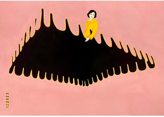 Und neue Wochenzeichnungen sind auch zu sehen. Die Künstlerin macht jede Woche eine Arbeit im Format A4 über das, was sie in der vergangenen Woche beschäftigt hat. Die Arbeit wird dann auf Instagram gepostet.